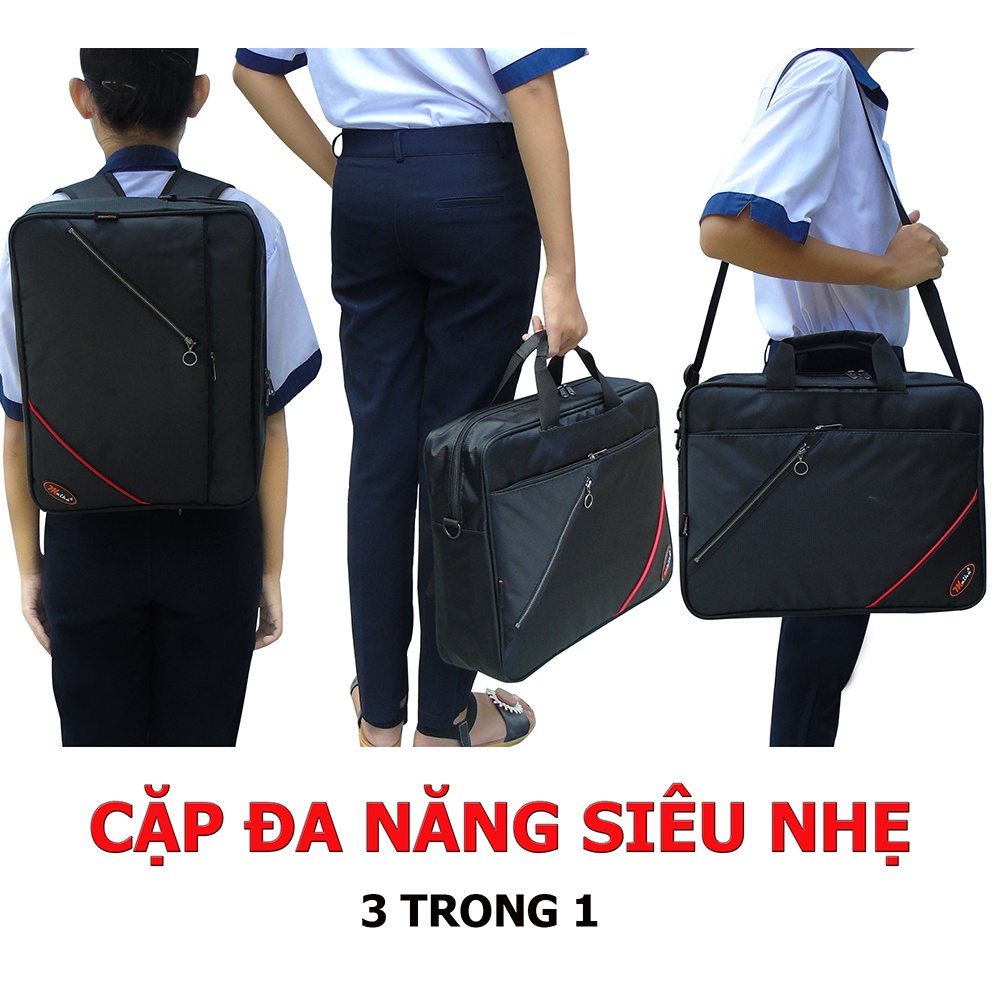 Bảo Vệ Cột Sống Dành Cho Học Sinh Lớp 6 -9, Cặp văn phòng laptop 12-13-14inch TÍNH NĂNG ĐỘT PHÁ MỚI Trọng lượng siêu nhẹ Chỉ nặng từ 600g - 700g . Đây được xem là sản phẩm Cặp Đa Nặng nhẹ nhất trên thị trường hiện nay . Kích thước: - Dài 38 x Rộng 12 x Cao 29 Chất liệu : Được làm từ vải polyester một chất liệu sợi tổng hợp có khả năng chống nhăn, kháng bụi bẩn, nấm mốc và tính thẩm mỹ cao khó bị xuống màu cực bền siêu nhẹ Tính năng 3 trong 1: Ưu điểm đặc biệt của cặp đa năng chính là sự tích hợp được cả 3 dạng : Xách Tay - Đeo Chéo - Đeo Vai . Với những thao tác đơn giản bạn đã chuyển được sang dạng phù hợp với nhu cầu công việc hay học tập mà vẫn giữ được những vật dùng cần thiết bên trong cặp đa nặng . Phù hợp cho : Học Sinh - Sinh Viên - Người Đi Làm Quai đeo và lưng được thiết kế cong , ôm sát vai và ngực cực êm , chống đau - gù lưng Dây kéo HKK siêu bền ( tuổi thọ lên đến 100.000 lần kéo ) trượt cực nhẹ và êm. -Thao tác xách tay: có ngăn phụ thiết kế che qua balo dành cho các bạn đi làm có thể xách tay như cặp văn phòng ác cam kết đến từ shop : Hình thật 100% do shop hoàn toàn tư chụp Màu sắc có thể lệch 1-2 % Tất cả sản phẩm điều được kiểm tra kỹ lưỡng trước khi đến tay người tiêu dùng Hàng lổi shop hoàn toàn đổi 1 đổi 1 và shop có chính sách bảo hành bảo cho tất cả sản phẩm cùa shop quý khách hàng yên tâm sử dụng Cần hổ trợ thêm về cách chọn kích thước vui lòng inbox shop