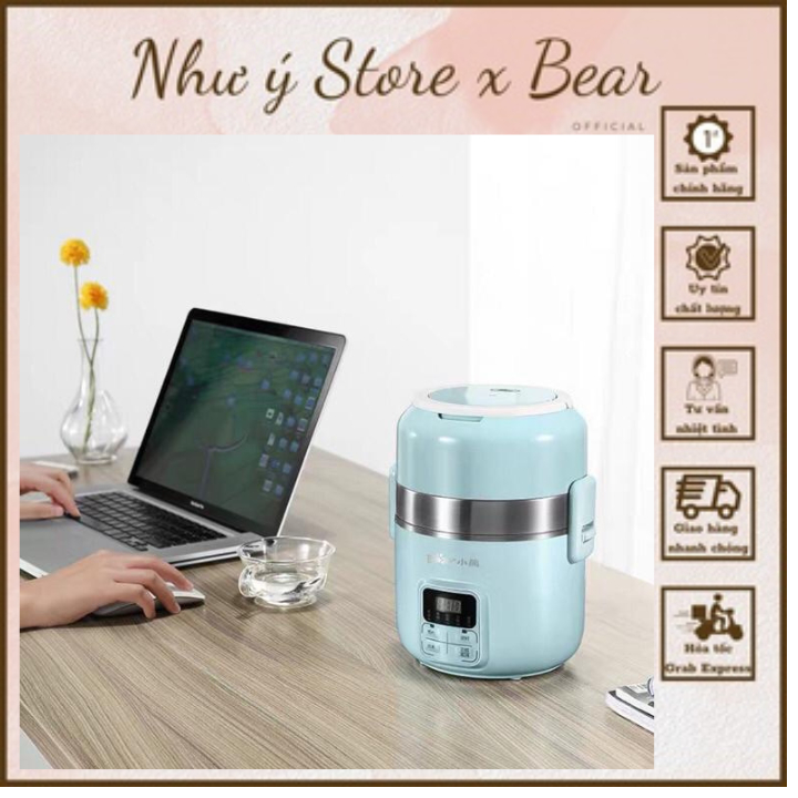Hộp cơm cắm điện Bear 1.5 lít, hẹn giờ thông minh, cặp lồng điện chống tràn, hàng chính hãng!