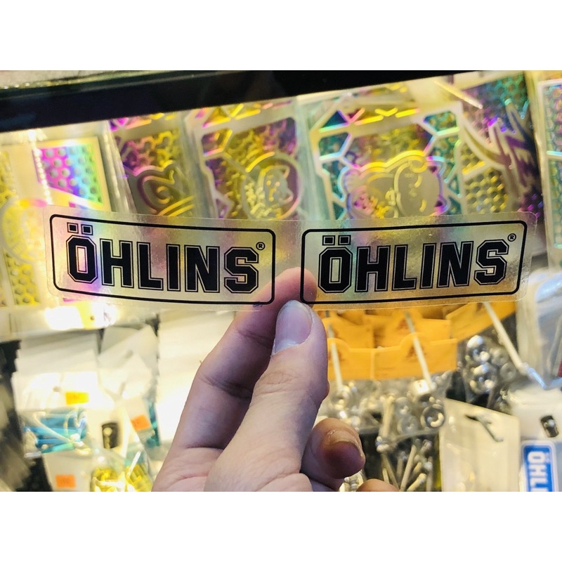 Cặp tem Ohlins trong suốt dán phuộc, bình dầu. Đủ màu sắc và kích thước