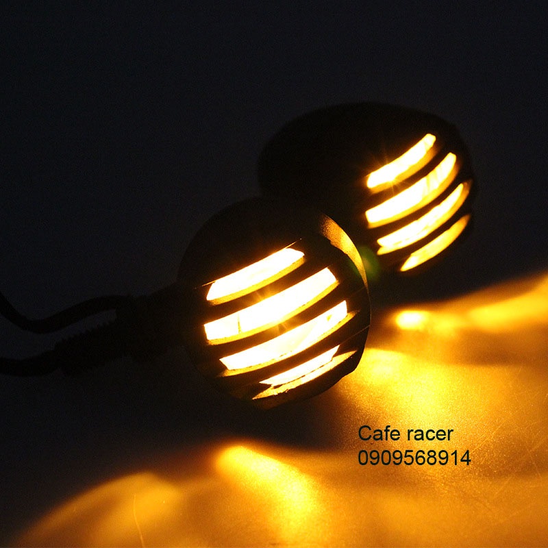 Cặp Xi nhan kim loại đúc nguyên khối cao cấp Dạng khía Đèn xi nhan thích hợp các loại xe: Harley, Cafe race, honda 67, Winner, EXceiter, Suzuki En, thuner, GZ, FZ,..... Đèn màu đen, ánh sáng Vàng. Vật liệu hợp kim nhôm cao cấp Nguồn 12V điện acquy 1 Cặp 140K Kích thướ