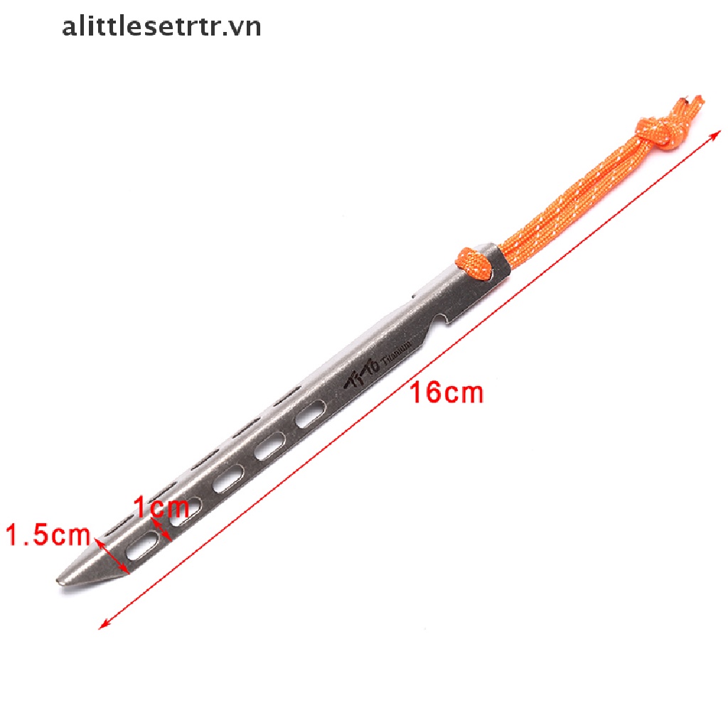 Đặc điểm: Hơn cổ phần trục Thiết kế hình chữ V, loại vỏ cao, vừa vặn với những vùng đất mềm như tuyết, cát... Khả năng cầm lớn hơn ở mặt đất mềm Dây phản quang gắn vào. Loại: móng tay lều Màu bạc Kích thước: 16cm x 1.5cm Trọng lượng: 20g Chất liệu: titan Gói bao gồm: 1 cái đinh lều