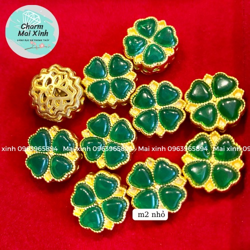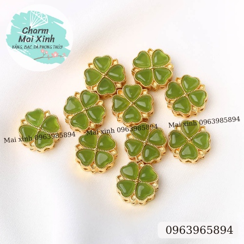Cỏ Bốn Lá Lớn May Mắn - xâu vòng tay nam nữ, charm phối vòng tay phong thuỷ handmade tự làm
