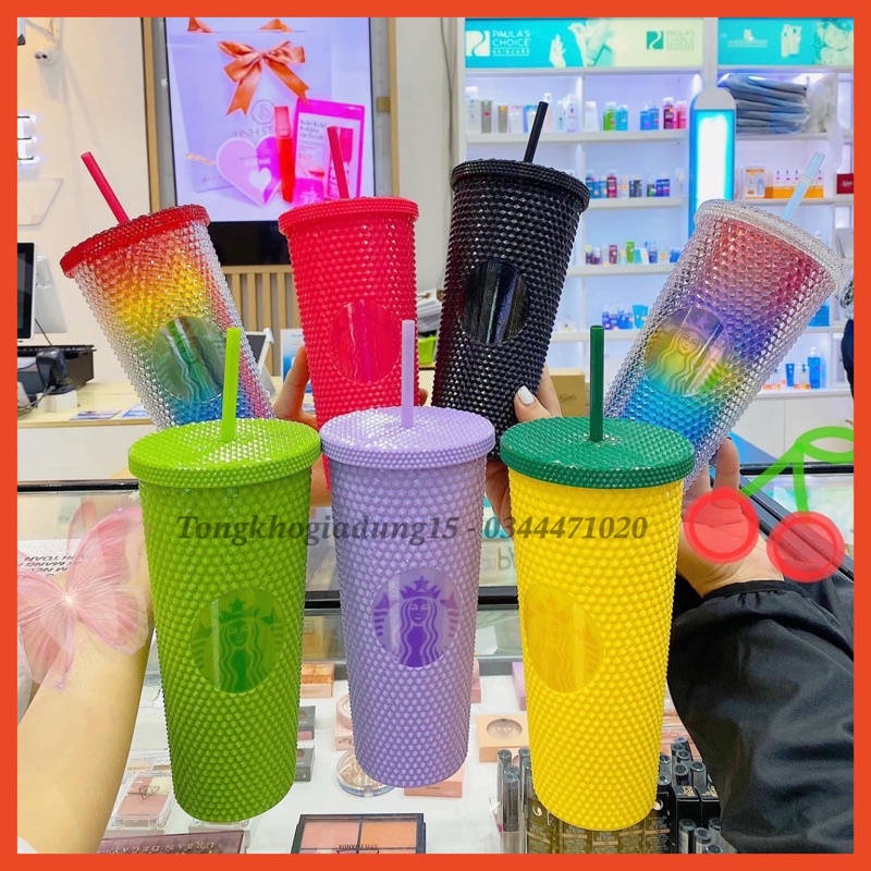 Cốc uống nước họa tiết kim cương 💧FREESHIP💧 Ly Starbucks kèm ông hút siêu đẹp