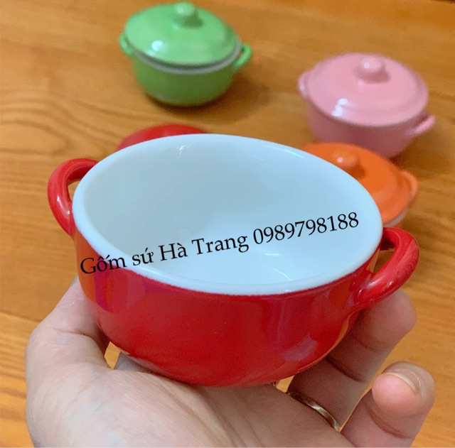 Cốc làm caramen gốm sứ Bát Tràng cao cấp không chì có hai quai xinh xắn