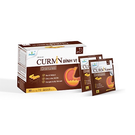 Cốm dạ dày CURMIN BÌNH VỊ (H/30 gói)- Cắt cơn đau dạ dày Thành phần cho 1 gói cốm 5g: - Nghệ Vàng 1,5g - Mật Ong 0,5g - Ô tắc cốt 0,35g - Cao Bình Vôi 0,25g - Cao chè dây 0,25g - Chỉ xác 0.15g - Cao Ngải Cứu 0,1g - Cao Hậu Phác 0,1g - Curcumin 160mg • Công dụng: - Giúp bổ tỳ dưỡng vị, điều hoà chức năng hệ tiêu hoá, giảm triệu chứng tổn thương dạ dày, đại tràng, tá tràng cấp và mãn tính, đầy bụng, ợ chua, ăn uống khó tiêu, đau rát bao tử. - Tăng cường và bảo vệ niêm mạc dạ dày ruột. • Đối tượng sử dụng - Người bị đau dạ dày, đại tràng, tá tràng cấp và mãn tính. - Người bị rối loạn tiêu hoá, đau thượng vị, đầy bụng, đầy hơi, ợ hơi, đau rát dạ dày thực quản do trào ngược acid dịch vị. • Hướng dẫn sử dụng - Uống trước bữa ăn 30 phút và uống với nước nguội. - Trẻ em trên 6 tuổi: uống 1/2 - 1 gói/ lần, ngày 2 lần. - Người lớn: uống 1 gói/ lần, ngày uống 2-3 lần. -Đợt sử dụng nên kéo dài từ 1-3 tháng cùng với chế độ sinh hoạt hợp lý để đạt hiệu quả tốt nhất. Số ĐKSP: 2511/2018/ĐKSP Sản xuất tại: Công ty Cổ phần Dược Phẩm Quốc Tế Dolexphar Lô C2, KCN ĐẠI AN MỞ RỘNG, LAI CÁCH, CẨM GIANG, HẢI DƯƠNG Sản phẩm không phải là thuốc không thể thay thế thuốc chữa bênh.