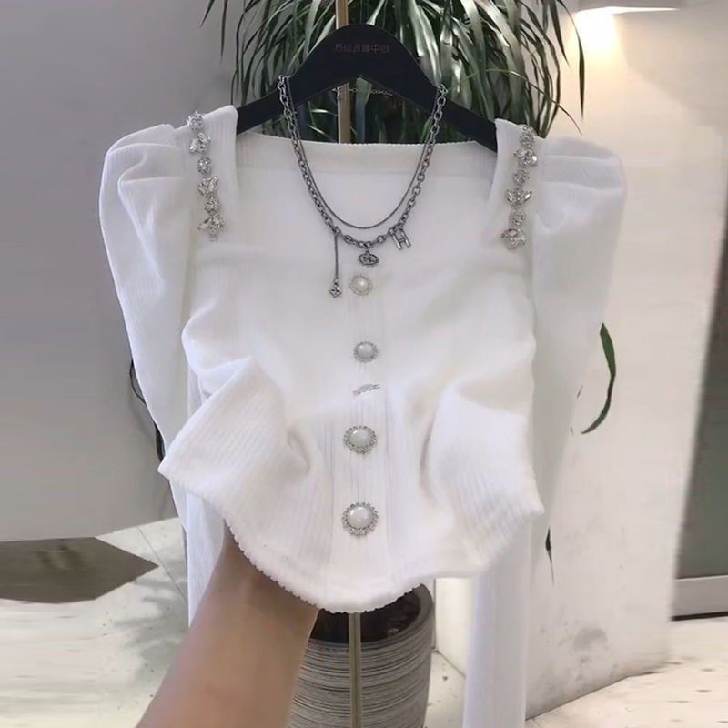 Áo LINA TOP áo khoác cổ tàu đính đá và lông vai by The Camellia Studio