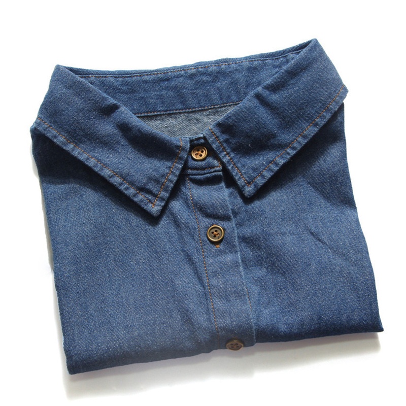 Cổ Áo Sơ Mi Giả Vải Denim Phối Nút Có Thể Tháo Rời Thời Trang Unisex