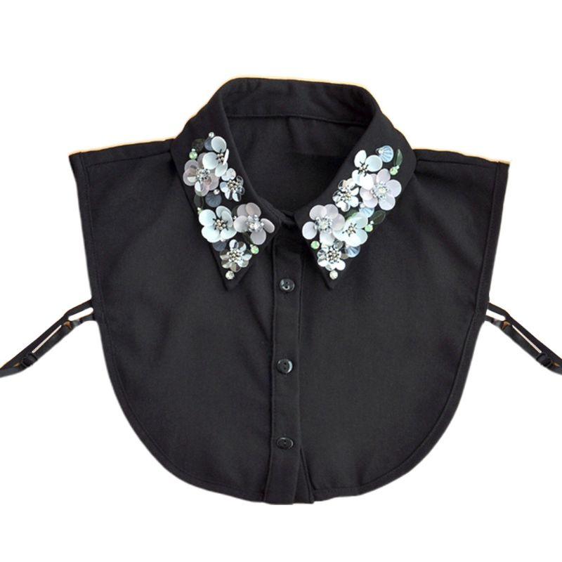 Cổ áo sơ mi nữ đính hạt cườm thủ công hình hoa có thể tháo rời