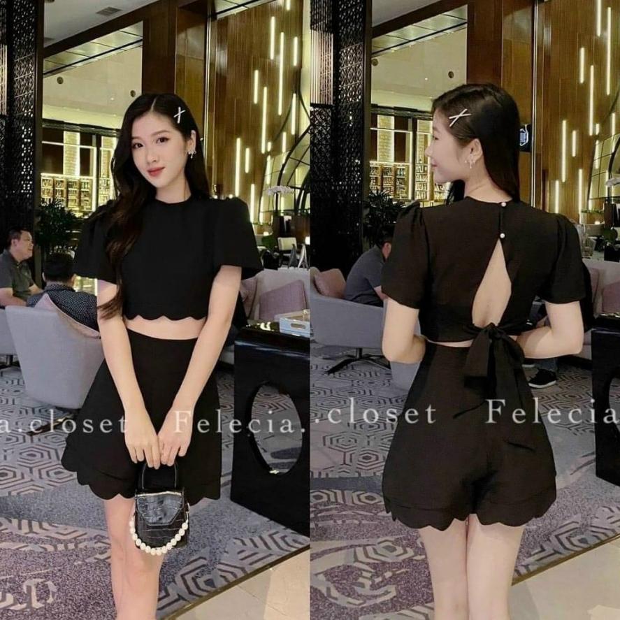 Sét Đi Biển Họa Tiết 2 Món Áo Cột Nơ Phối Quần Đùi Chất Jean Phối Ren Cao Cấp Hình Thật