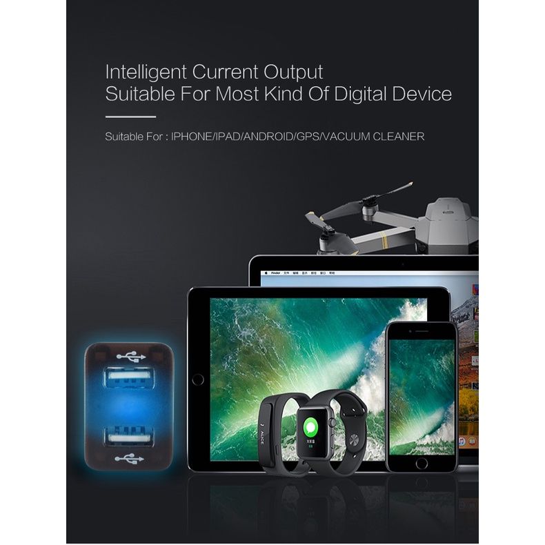 Củ Sạc Điện Thoại 12-24V Cổng USB Kép Có Đèn LED Cho Xe Hơi Toyota 2.1A