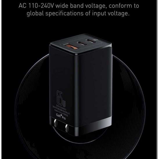 Củ sạc nhanh Baseus gan 65w 3 cổng - Cục kèm dây dùng cho laptop điện thoại ...