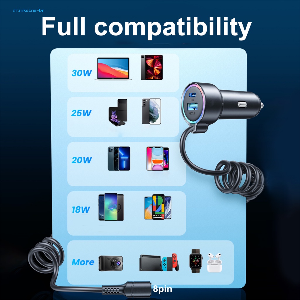 Củ Sạc Nhanh 3 Trong 1 Có Đèn led Nhiều Màu Cho Xe Hơi