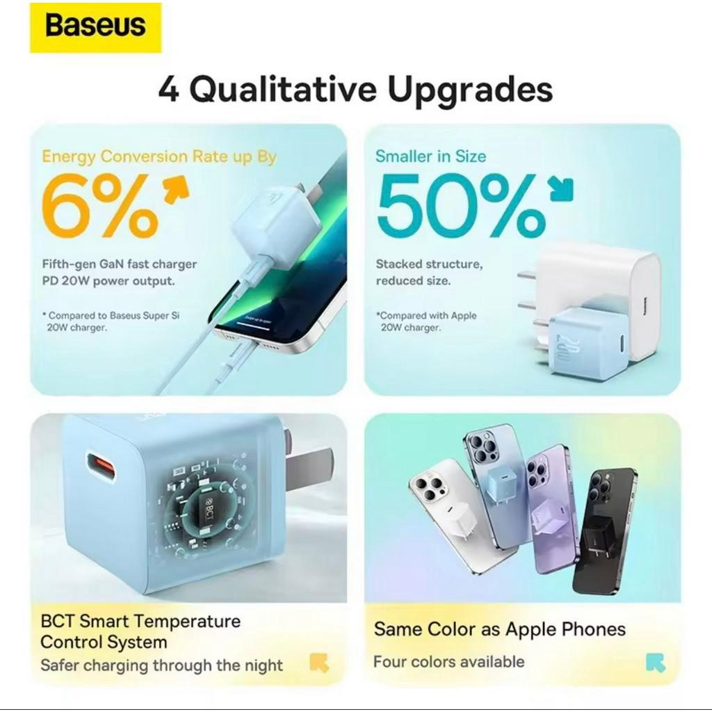 Củ Sạc Nhanh Baseus PD 20W mini GaN5,Combo ,Cho 14 Pro Max 13 12 11 Xs 8P 8 iPad vv