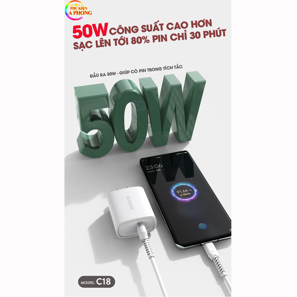 Củ sạc nhanh siêu tốc 8A C18 ✅ Cs tới 50W ✅ Chip thông minh, sạc nhanh không hại máy ✅ Chính hãng, BH 1 năm