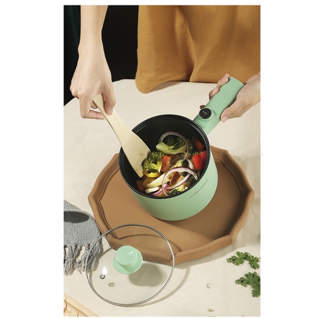 Ca Nấu Mì Dài, Nồi Lẩu Điện Mini 18cm Dantemei Cao Cấp Kèm Giá Hấp Inox, Tay Cầm Dài Tiện Lợi 2 Nắc Nhiệt