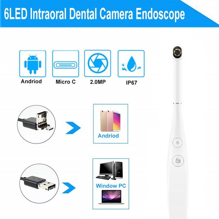 Camera nội soi nha khoa ***LƯU Ý: KHI MUA CHỌN PHÂN LOẠI : 1- CÓ DÂY: 6 led Loại dùng cho mọi máy tính và điện thoại hỗ trợ camera gắn ngoái (chát để tư vấn) độ phân giải 480x680P 2-KHÔNG DÂY 8 led : Loại dùng cho mọi điện thoại, IPAD ở bất cứ đâu, nơi nào (không cần mạng internet) loại này đô nét cao HD1920x1080P Theo nhu cầu sử dụng, camera là 1 thiết bị công nghệ thông minh ngày càng được sử dụng phổ biến . Camera vì thế cũng ngày càng được phát triển và phân ra thành rất nhiều loại phụ thuộc vào hình dạng, chức năng, mục đích sử dụng...Ngoài 1 số loại ứng dụng như: giám sát, ghi hinh thông thường ra thì Camera nội soi cũng là 1 thiết bị không còn xa lạ gì với người tiêu dùng .Camera nội soi cũng có rất nhiều loại sử dụng vào từng mục đích riêng tùy thuộc vào người sử dụng như : soi tai, răng ... Nổi bật trong lĩnh vực soi răng thì không thể bỏ qua Camera nha khoa 3 in 1HD720p Nội soi miệng 6LED . Đây là loại Camera chuyên dụng soi răng mới nhất trên thị trường hiện tại. Với thiết kế nổi bật là màu trắng tinh tế, kích thước nhỏ gọn cùng với dàn 6 đèn Led trợ sáng và ống kính cho độ nét cao Camera nha khoa 3 in 1HD720p Nội soi miệng 6LED hứa hẹn sẽ đem lại cho người dùng trải nhiệm tuyệt vời. Đặc điểm nổi bật: 1.Camera nha khoa 3 in 1HD720p Nội soi miệng 6LED : Được trang bị với 1.0 Megapixel 720 P HD máy ảnh, 6 pcs đèn LED độ sáng có thể được điều chỉnh, Camera nha khoa 3 in 1HD720p Nội soi miệng 6LED có thể có được hình ảnh thực sự và video trực tiếp từ gần quan sát. 2.An toàn Làm Sạch Răng :So với truyền thống Camera nha khoa 3 in 1HD720p Nội soi miệng 6LED này có thể rõ ràng hiển thị các bên trong răng của bạn thông qua hình ảnh và video, vì vậy bạn có thể loại bỏ của chất bẩn dễ dàng tránh gây thương tích cho răng. 3.Đa chức năng Nội Soi: Tai này làm sạch máy ảnh làm việc tuyệt vời cho con vật cưng của bạn (chó, mèo và nhiều hơn nữa) là tốt. Và nó là một tuyệt vời kiểm tra máy ảnh cho đôi mắt, mũi, miệng, da và nhiều hơn nữa Tính năng, đặc điểm: Kích thước nhỏ gọn, tín hiệu không bị cản trở và iamge 360 độ Cấm chống nước và xả nước vào camera bảo vệ Đèn LED6 để quan sát rõ hơn Phần mềm OTG Đặc điểm kỹ thuật: Màu sắc: Trắng Cảm biến: 2 triệu pixel. 6LED: Điều chỉnh ánh sáng. Ống kính có góc rộng 85 độ và phạm vi quan sát rộng hơn. Độ sâu trường ảnh: 2-4cm (với ống kính quang học nhập khẩu). Giao diện USB 2.0 và Android micro C. Đánh giá chống nước: ip67. Đóng gói: 1x nội soi miệng. Bộ sản phẩm bao gồm: 1 x Camera liền dây 1 x khăn lau 1 x Đầu chuyển đổi Type C 1 x Giấy HDSD 1 x Hộp đựng