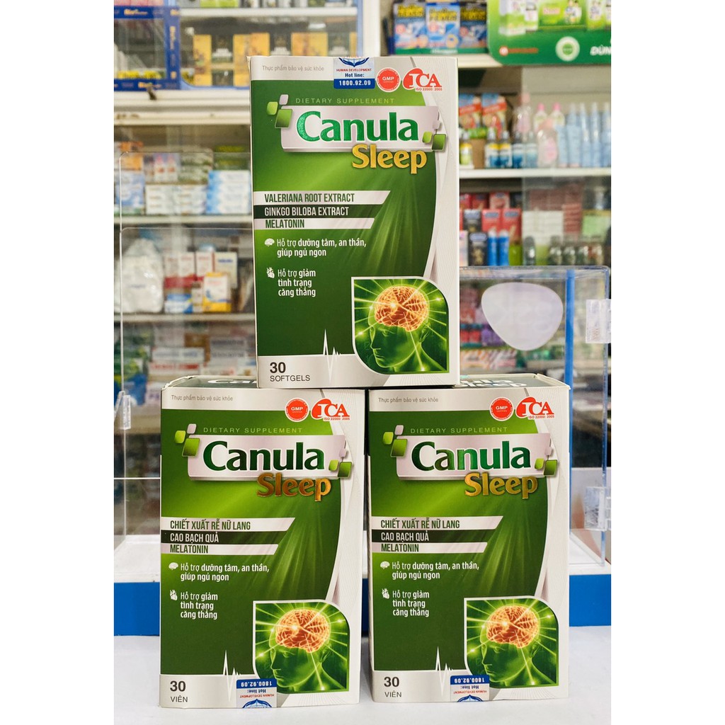CANULA SLEEP: Chai 30 viên THÀNH PHẦN: - Cao bạch quả..................................120mg - Chiết xuất rễ cây nữ lang..................70mg - Táo nhân bột.....................................50mg - Tâm sen bột.......................................40mg -