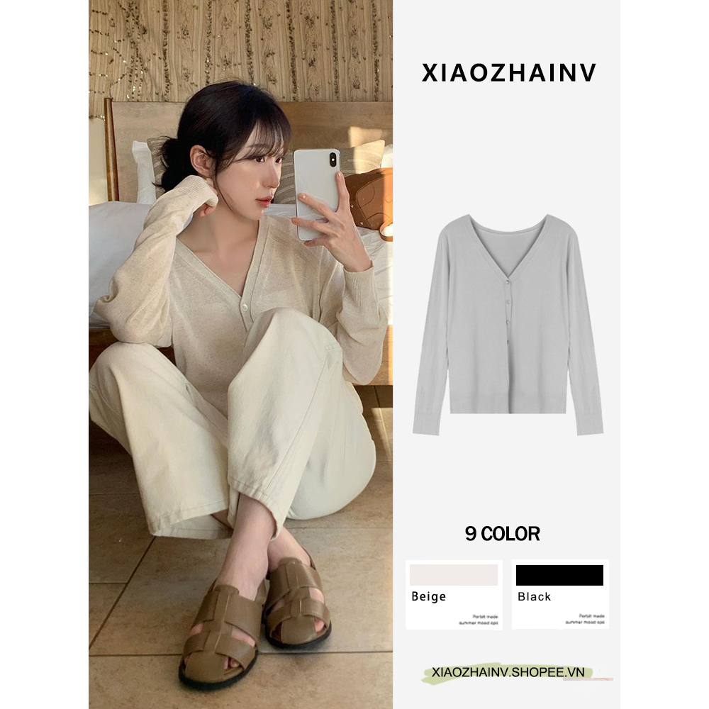 Áo Khoác Cardigan Cổ Chữ V Tay Dài Màu Trơn Dáng Ôm Thời Trang Mùa Hè Dành Cho Nữ