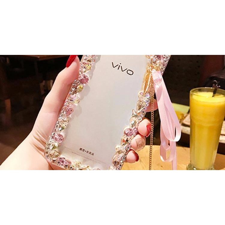 Case for iPhone 15 15Pro ProMax 14 13 12 11 Pro Max X XS Max Ốp điện thoại nhựa cứng đính đá tráng gương và có dây đeo cho