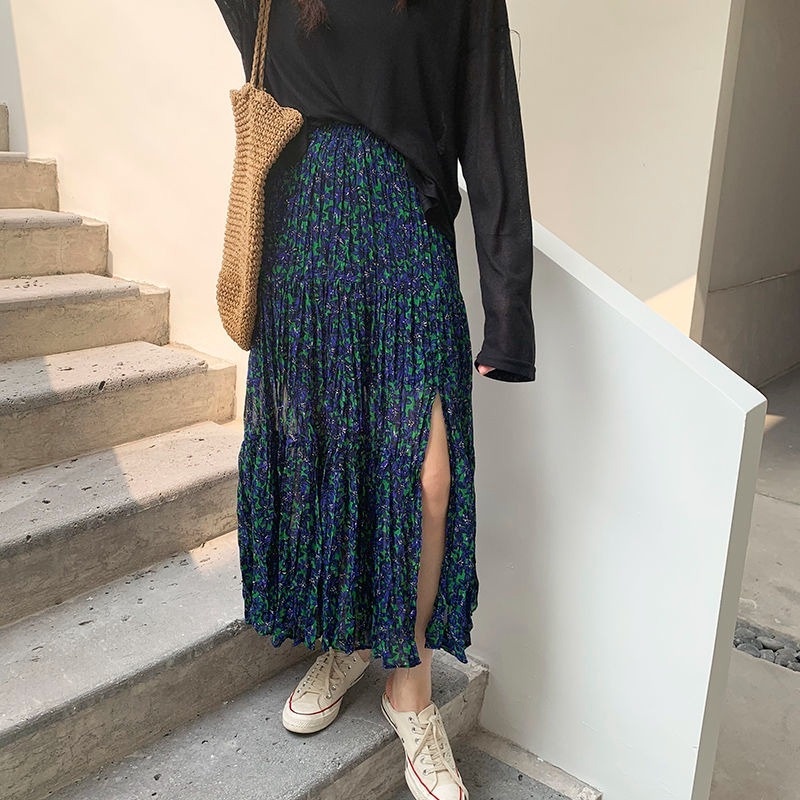 Chân Váy Chiffon Mỏng Dáng Chữ A Lưng Cao Xếp Ly In Họa Tiết Hoa Xinh Xắn Thời Trang Mùa Hè Cho Nữ