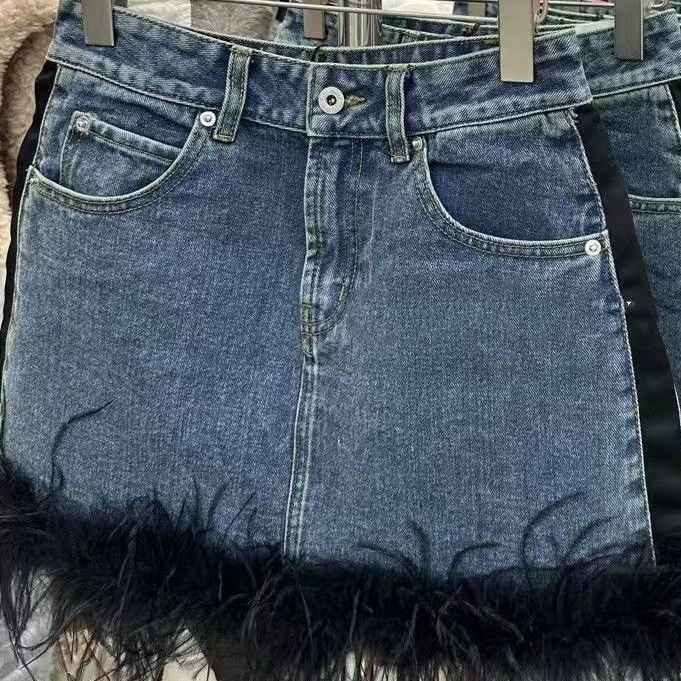 Chân Váy denim Chữ a Lưng Cao Phối Len Phong Cách retro Mùa Xuân Kiểu Mới Có 23 Kiểu