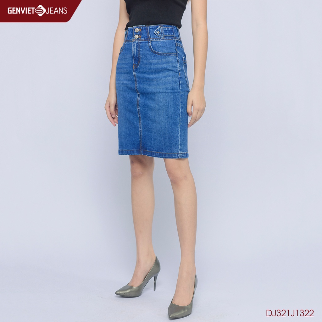 Chân Váy Jeans Nữ Dáng A Ôm Juyp Nữ Công Sở Genviet Chất Bò Mềm Thoải Mái Tiêu Chuẩn Quốc Tế DJ321J1322