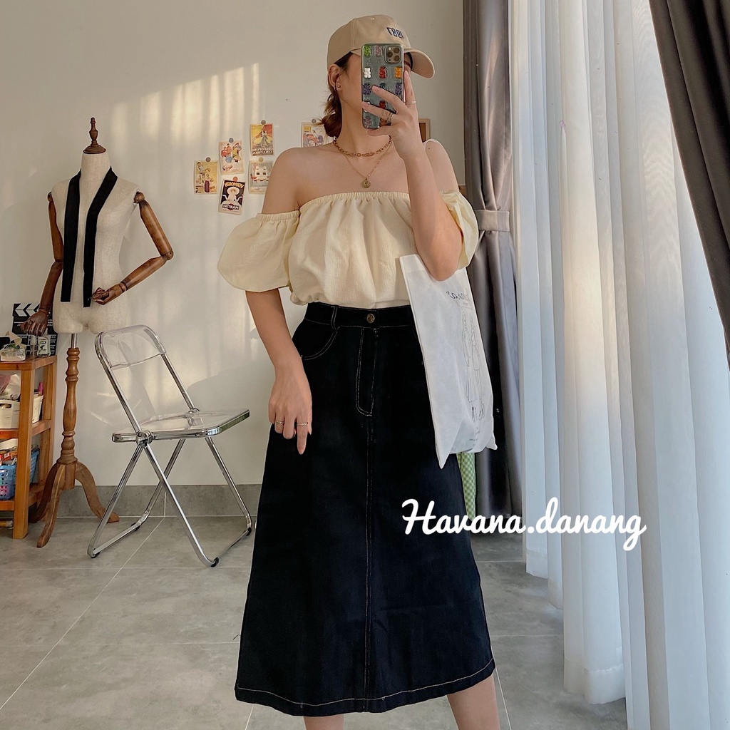 SET ÁO SƠ MI TAY NGẮN + CHÂN VÁY MIDI KAKI KEM RÊU ĐEN XANH HỒNG TÍM NÂU