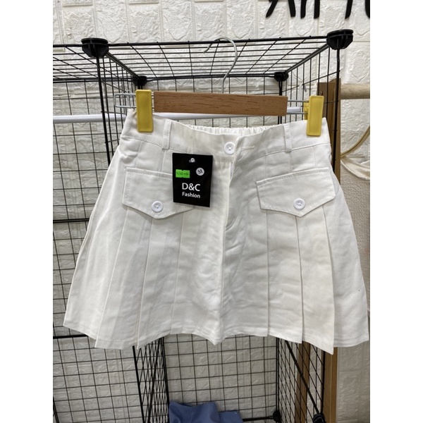 Chân Váy kaki ngắn xếp ly phối lắp túi lưng chun cho nữ