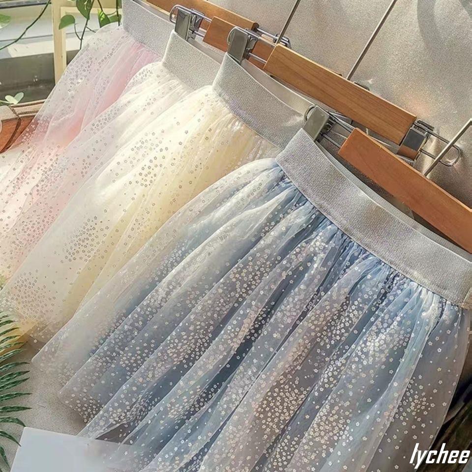 ✨ 78CM Váy xếp ly lưới ✨Chân Váy Lưới Xếp Ly Thiết Kế Bất Đối Xứng Nữ Tính
