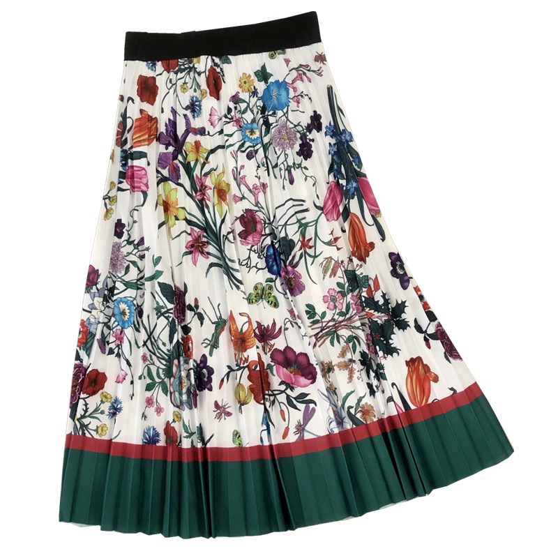 Chân Váy midi Chữ a Lưng Cao Xếp Ly In Họa Tiết Hoa Màu Xanh Lá Phong Cách Hàn Quốc Thời Trang Mùa Hè Xinh Xắn Cho Nữ