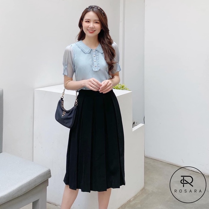 Chân Váy Midi Thiết Kế Dáng Dài Xếp Ly nữ Công Sở ROSARA GG03 - Chất liệu vải: Tuyết mưa - Hàng đủ size: S,M.L - Màu sắc: Đen - Xuất xứ: Thời trang Rosara -Hướng dẫn giặt ủi : nên giặt tay, không giặt cùng sản phẩm màu Chân Váy Midi Thiết Kế Dáng Dài Xếp Ly nữ Công S