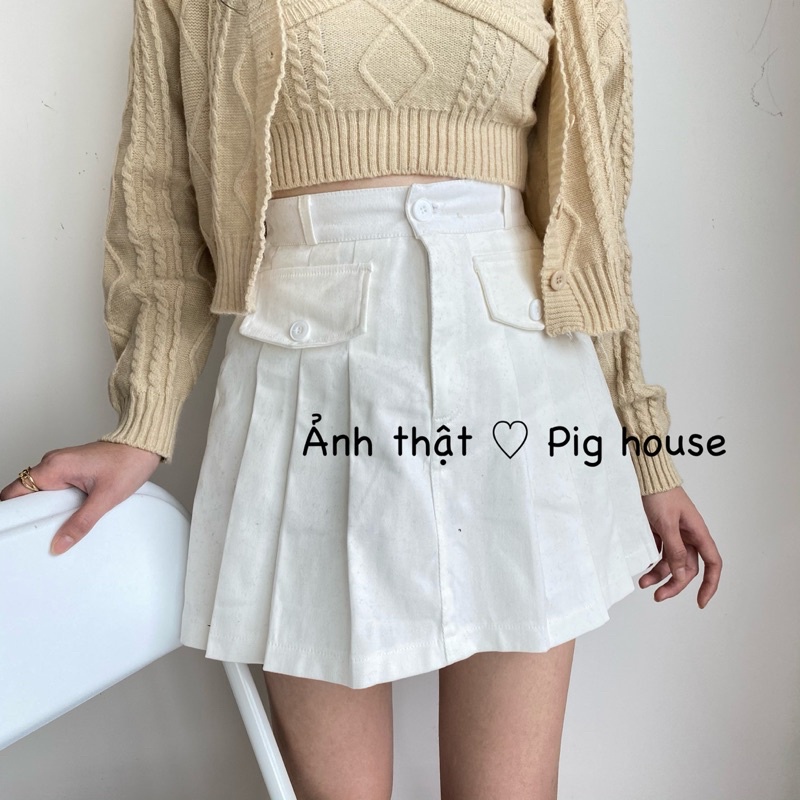 🔗 Toàn bộ hình ảnh và video đều do team Pighouse thực hiện , mẫu quần váy mới này sẽ gắn mác tên shop luôn nhé . Các nàng lưu ý nha !!! THÔNG TIN SẢN PHẨM : 🔗 Chân váy nữ xếp ly túi trước chất kaki dày dặn lên form cực xinh 🔗 Màu sắc : Trắng / Đen / BE 🔗 Kích thước: + Size S eo 58cm - 65cm , mông 90cm , dài tầm 38 + Size M eo 65cm - 72cm , mông 95cm , dài tầm 38 + Size L eo 72cm - 78cm , mông 100cm , dài tầm 38 Sai số tầm 2-3cm các nàng nha. Số đo eo trên là đã tính phần co giãn của lưng quần , Các bạn thích bạn vừa hay rộng xíu thì tự cần nhắc ạ <3 các nàng cần thêm thông tin về sản phẩm hoạc tư vấn inb ngay cho shop nha 🐻🐻