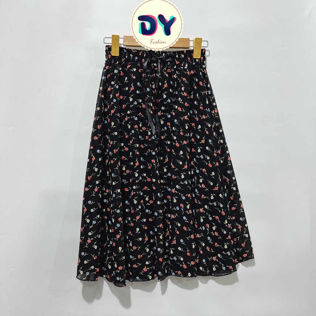 Chân váy voan nữ xếp ly dài ngang gối mẫu hoa nhí siêu xinh chất liệu mềm mại 2 lớp.
