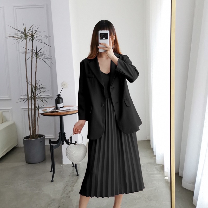 Chân váy xếp ly 🦋 cạp chun bản to giúp vòng eo thon gọn dáng dài chất bóng mịn xoè vintage ulzzang phong cách hàn quốc