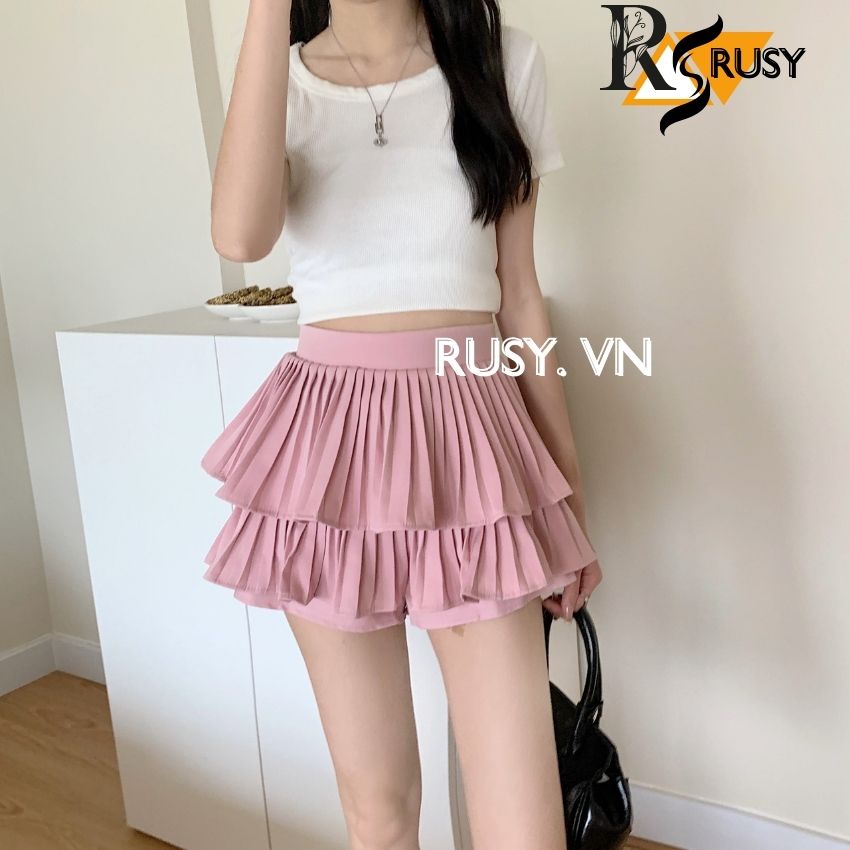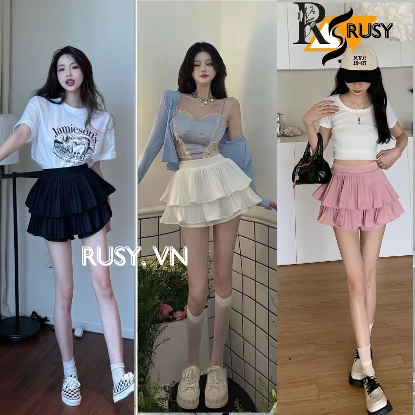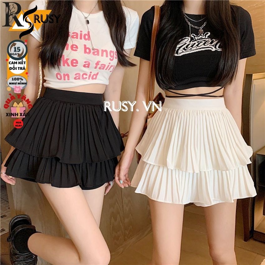 Chân váy xếp ly 2 tầng có lót quần, Chân váy tầng dáng ngắn cạp cao CV995 - NhiNhi Shop