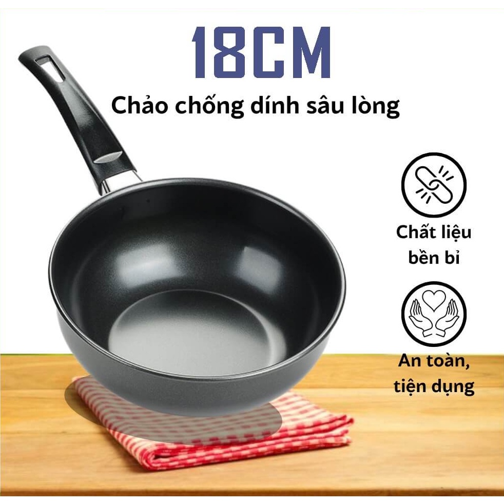 Chảo chống dính sâu lòng mini 18cm dùng được cho cả bếp từ tiện lợi
