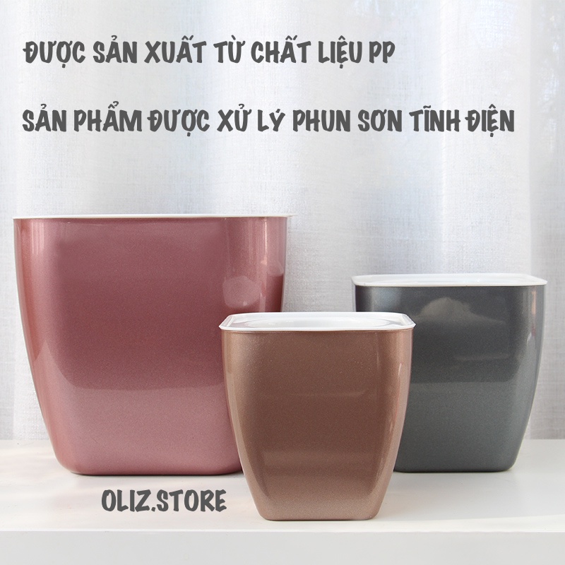 * KÍCH THƯỚC SẢN PHẨM: - Size S - Mã sản phẩm G103: Miệng ngoài chậu 10.4cm, độ cao thân chậu 10.6cm, miệng trong giỏ chậu 8cm, độ cao giỏ chậu 7cm. - Size M - Mã sản phẩm G105: Miệng ngoài chậu 12.5cm, độ cao thân chậu 12.5cm, miệng trong giỏ chậu 10cm, độ cao giỏ c
