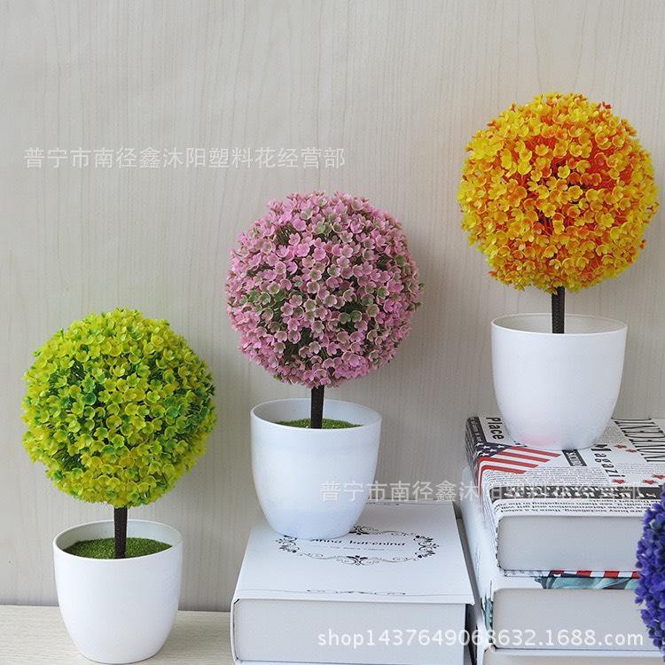 Hoa lụa, hoa giả, chậu hoa cẩm tú cầu mix cao 20cm phong cách Hàn Quốc