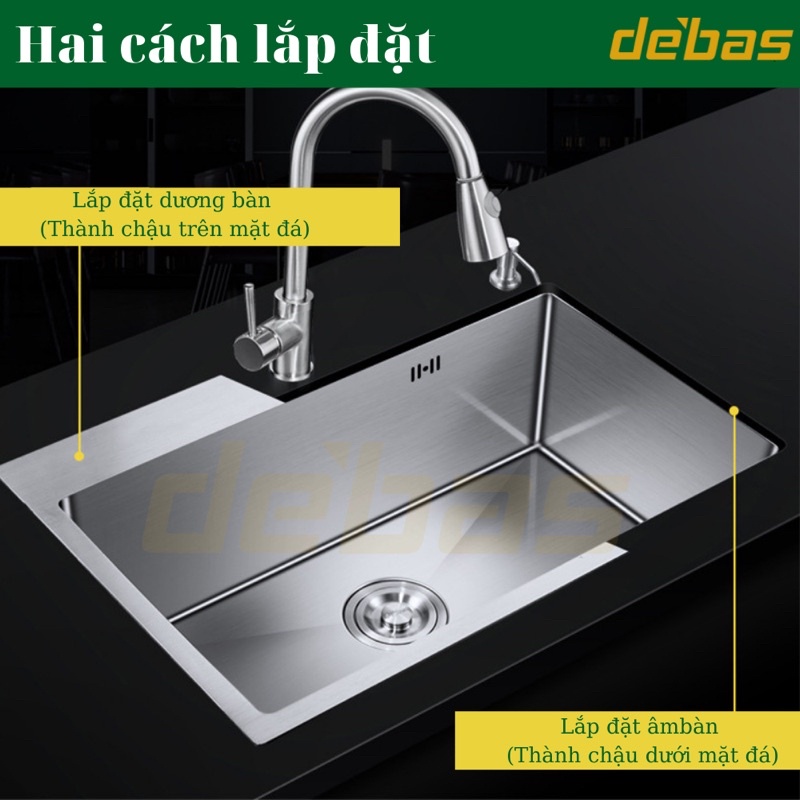 Chậu rửa bát đúc 1 hố to inox sus304 bồn rửa chén 1 hộc korea Debas 4045 6045 6845 7545