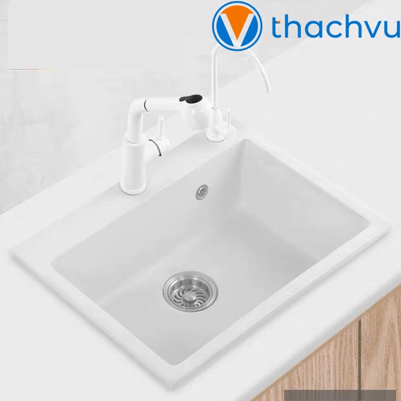 Chậu rửa chén bát bằng đá nhân tạo 56x47 dầy 1cm, chống xước tráng men chống bám bẩn, không ố vàng chống thấm vĩnh viễn.