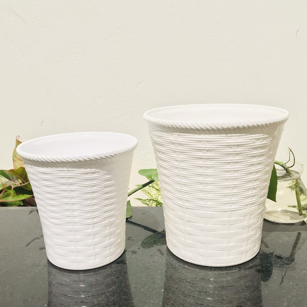 Chậu trồng cây, chậu nhựa trồng cây mây đan 2 lớp màu trắng 2 kích thước