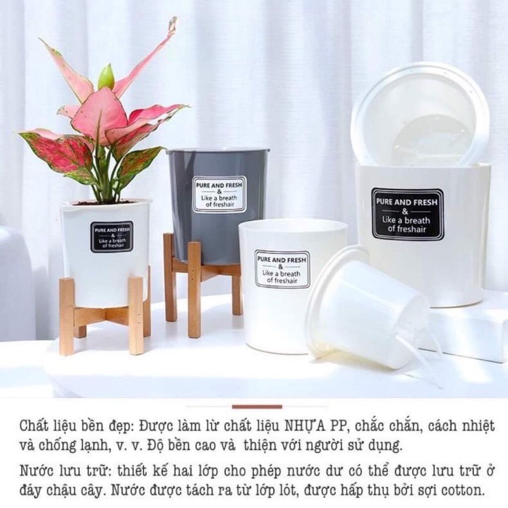 Chậu trồng cây Oliz-TA0 Có khả năng tự tưới nước tặng giá đỡ bằng gỗ, thiết kế theo phong cách vintage
