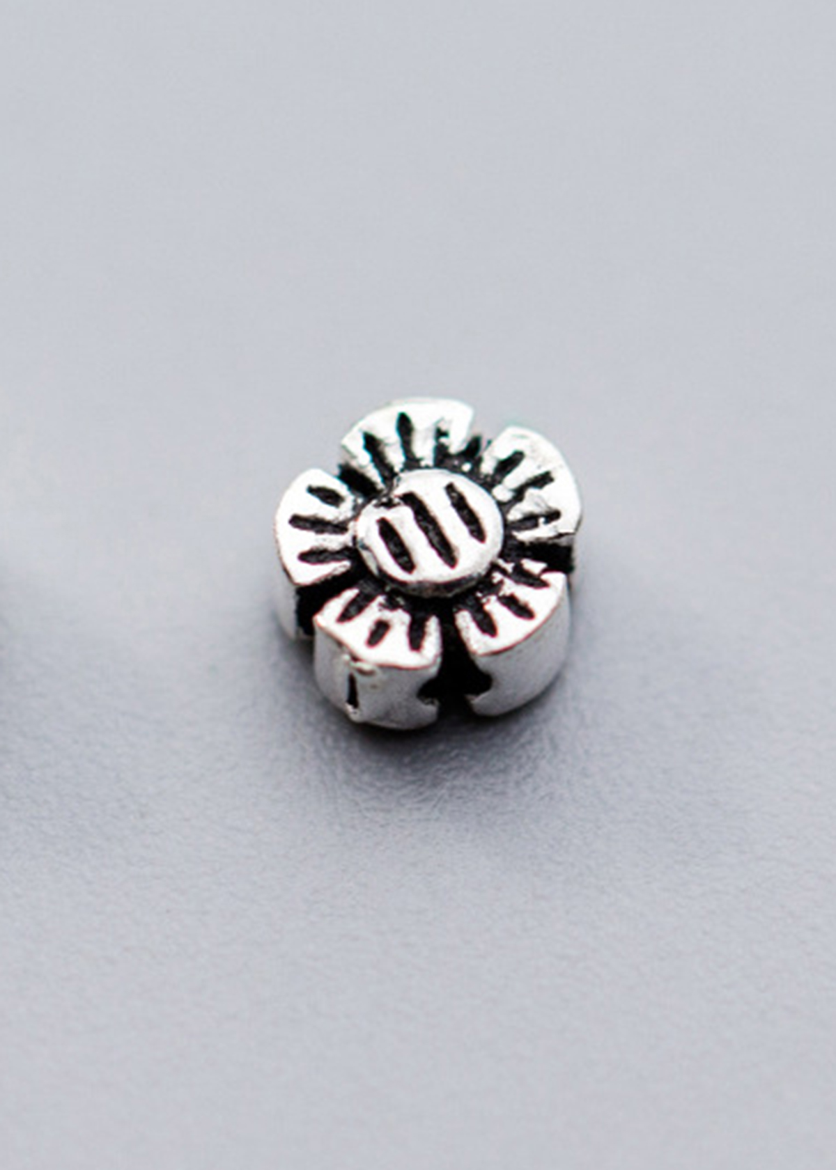 Combo 3 cái charm bạc chặn hạt hình trụ họa tiết bông hoa - Ngọc Quý Gemstones