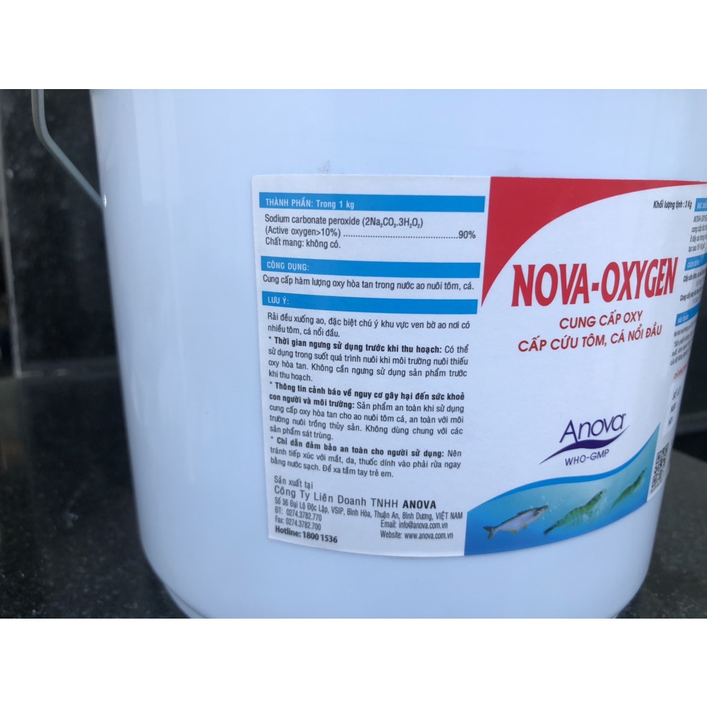 Chế Phẩm Cung Cấp Oxy Cho Tôm Cá Hãng Sản Xuất: Anova – Việt Nam Mã Hàng: Nova Oxygen Quy Cách: Xô 5kg / xô 3kg (Loại Dạng Bột) Anova Nova Oxygen là loại chế phẩm chuyên dùng trong thủy sản, nhằm cung cấp Oxy cho tôm cá. Chế phẩm thường được dùng để cấp cứu khi tôm,