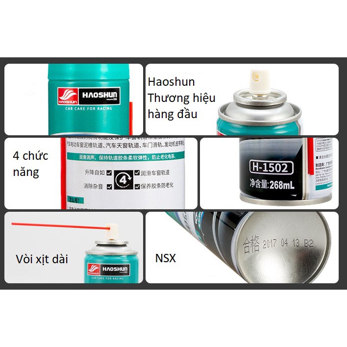 Chai xịt chống kẹt kính cửa sổ ô tô bảo dưỡng phục hồi chi tiết nhựa gioăng cao su 268ml