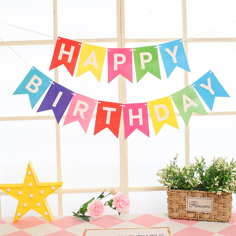 Chữ đầy màu sắc Chúc mừng sinh nhật Biểu ngữ tiệc treo Biểu ngữ cờ đuôi nheo Biểu ngữ giấy