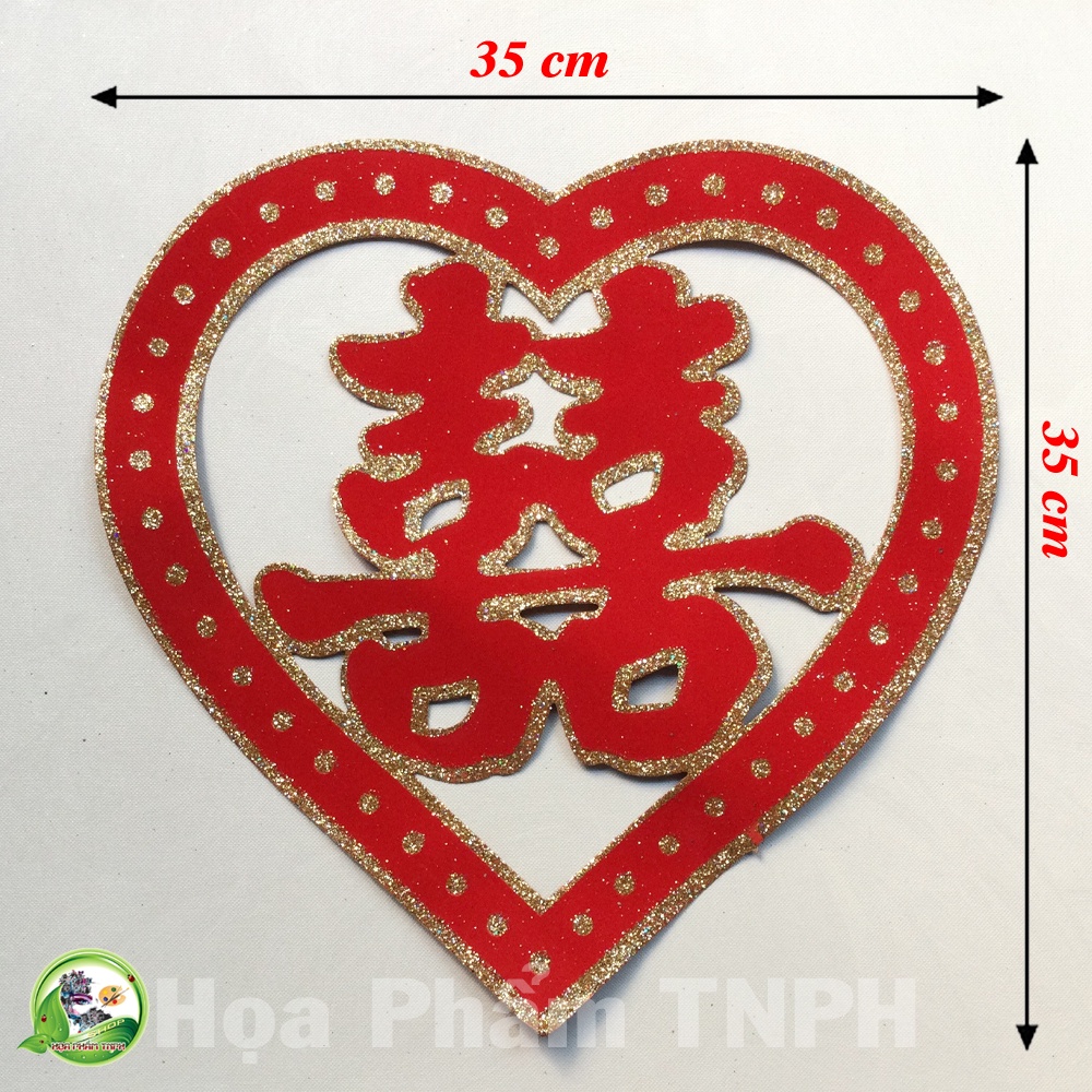 Chữ Hỷ 34x34 cm Hình Trái Tim 3D Nhung Nỉ Đỏ Họa Tiết Ánh Kim Sang Trọng Tuyệt Đẹp Trang Trí Phòng Cưới Xe Hoa Cô Dâu