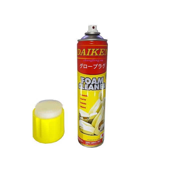 Chai Vệ Sinh Bảo Dưỡng Nệm Ghế Da & Nỉ DAIKEN FOAM CLEANER 650ml. Là sản phẩm thông minh thiết kế tiện dụng nắp bình xịt kèm bàn chải, là dạng bọt nên dễ dàng thấm sâu vào các vết bẩn giúp làm sạch các đồ dùng có chất liệu bằng da, nỉ rất dễ dàng. Làm sạch ch