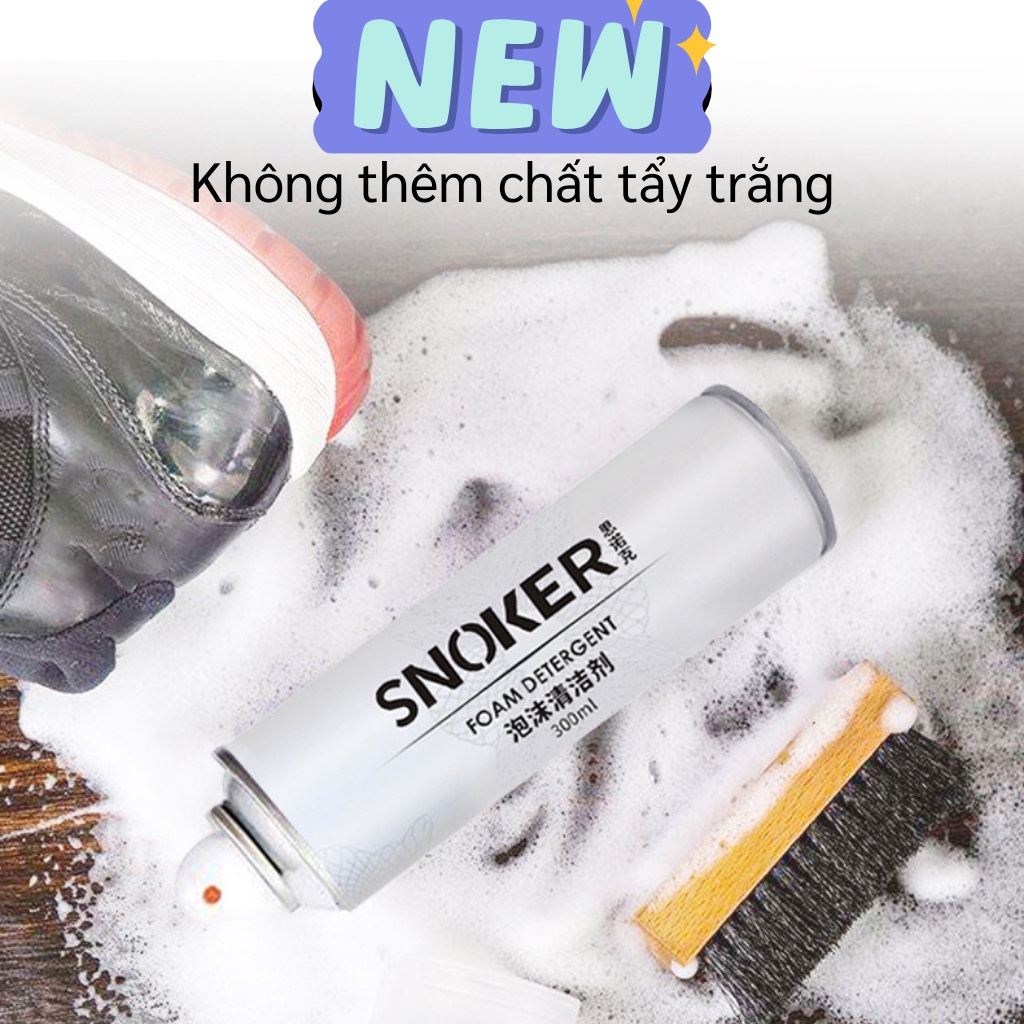 👟 Thông tin sản phẩm Chai Vệ Sinh Giày, Bình Xịt Tạo Bọt Tuyết Snoker Làm Sạch Và Tẩy Trắng Giày Dép, Túi Xách, Ghế Sofa. Đồ Da Tiện Lợi Hầu hết chúng ta không biết việc dùng bột giặt thông thường hoặc xà phòng để vệ sinh giày sẽ khiến giày của bạn dễ bị ố vàng, cứng