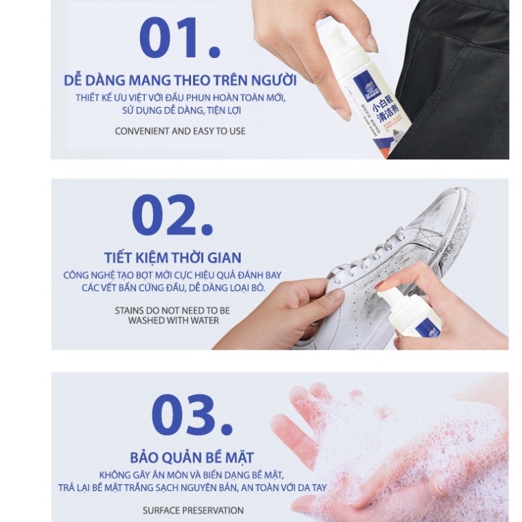 CHAI XỊT VỆ SINH GIÀY CAO CẤP LKB 200ML - BÌNH XỊT BỌT LÀM SẠCH, LÀM TRẮNG GIÀY DÉP SIÊU TỐC - MIFAN HÀNG CHÍNH HÃNG Giày trắng bị bám bùn đất, bụi bẩn khiến bạn không tự tin? Đừng lo vì chai xịt vệ sinh giày sẽ giúp bạn đánh bay vết bẩn chỉ trong tích tắc! -------